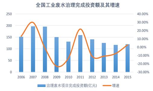 全國(guó)工業(yè)廢水治理完成投資額及其增速