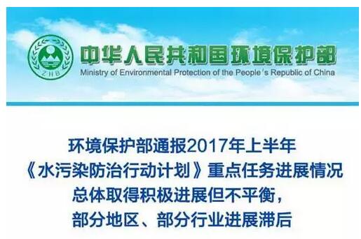 另一份是8月24日剛剛發布的2017上半年《水污染防治行動計劃》重點任務進展情況。截至2017年6月底,全國水污染防治工作總體取得進展但不平衡,部分地區、部分行業進展滯后,按期保質完成2017年重點任務形勢嚴峻。